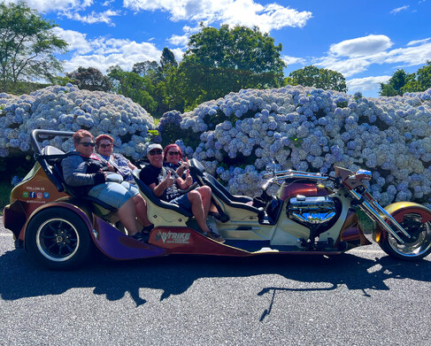 At V8 Trike Tours, everyone is invited to embark on a truly unique and exhilarating experience. Our trikes are designed and built in New Zealand, boasting powerful 5700cc Chevrolet motors that deliver full-throttle excitement. These impressive machines never fail to turn heads as they conquer the streets around the iconic Mount Maunganui.