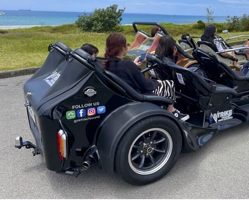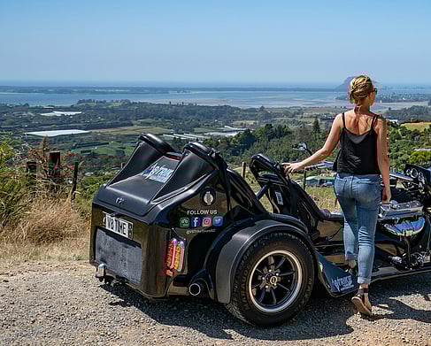 At V8 Trike Tours, everyone is invited to embark on a truly unique and exhilarating experience. Our trikes are designed and built in New Zealand, boasting powerful 5700cc Chevrolet motors that deliver full-throttle excitement. These impressive machines never fail to turn heads as they conquer the streets around the iconic Mount Maunganui.